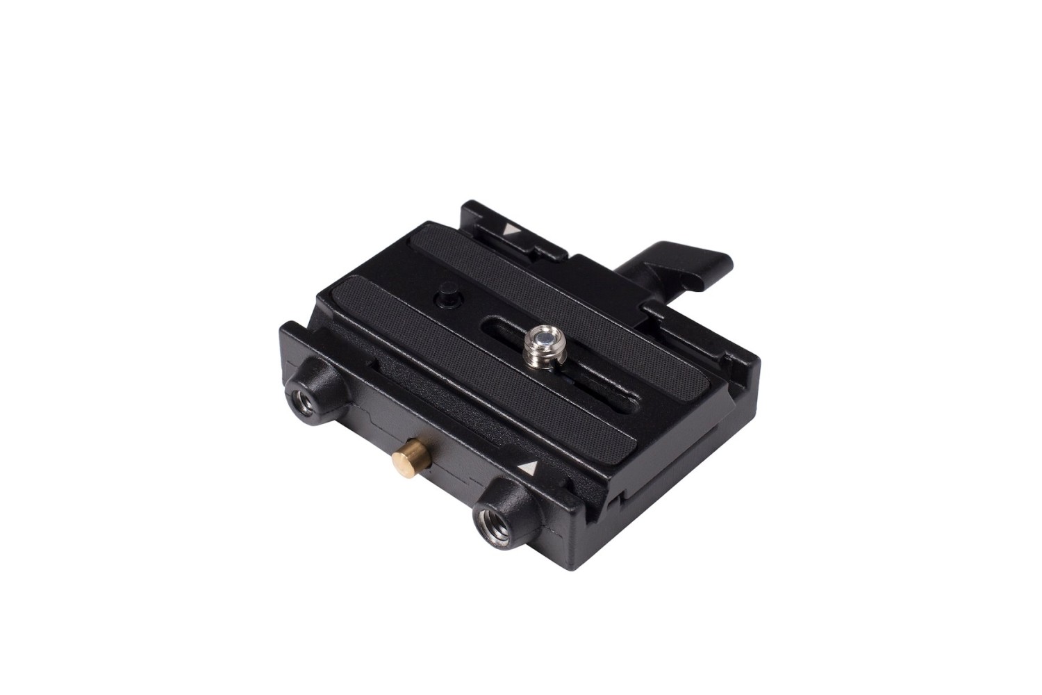 Dieser Adapter aus strapazierfähigem Aluminium ist leicht (0,28 kg) und dennoch robust genug für den professionellen Einsatz. Sein universelles Design ist mit einer Vielzahl von Kameraplatten und Zubehörteilen kompatibel und er wird mit Standardschrauben von 6,4 mm und 9,5 mm geliefert, sodass er in fast jede Konfiguration integriert werden kann. Der clevere Schnellverschlussmechanismus ermöglicht eine reibungslose, problemlose Bedienung und ist ideal für schnelllebige Aufnahmesituationen.