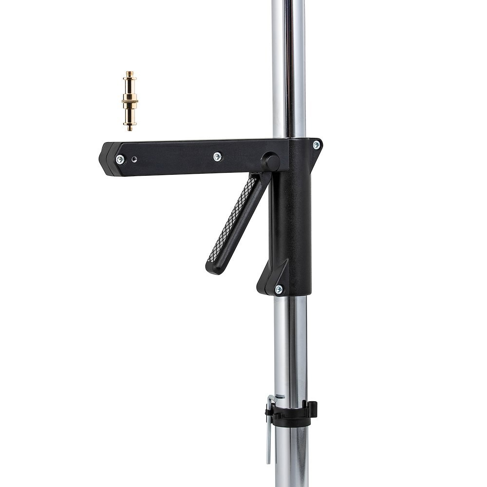 Der Manfrotto 231ARM ist ein verschiebbarer Stützarm (nur Säule) mit einer Schnellwechselhalterung (16 mm, 5/8″) für 35-mm-Studiostative (z. B. 231B/CS-Stative), der eine schnelle, werkzeuglose Befestigung von Leuchten oder Zubehörteilen über den mitgelieferten Spigot 013 ermöglicht und eine stufenlose Höhenverstellung entlang der gesamten Säule bietet.