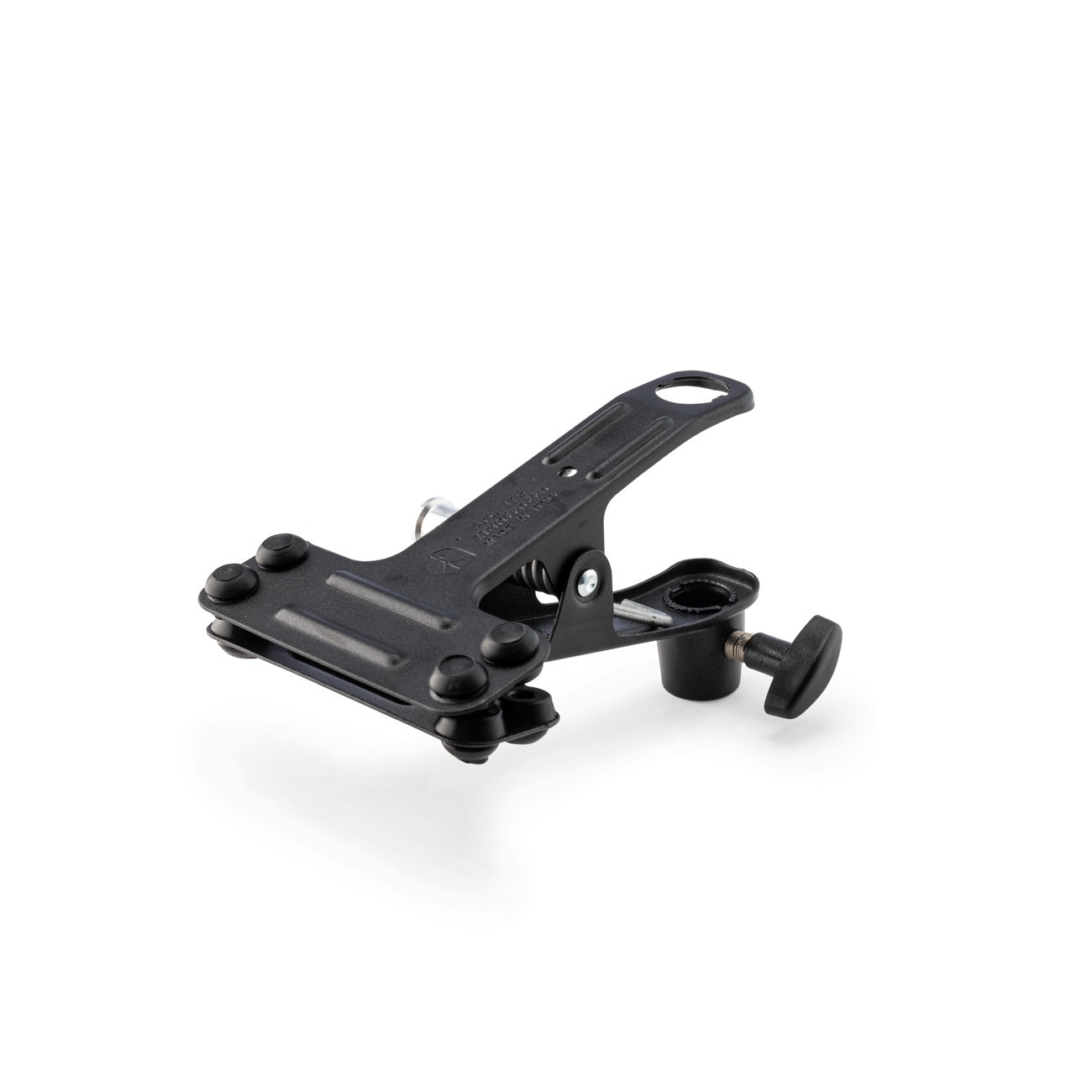 Der Manfrotto 175Z ist eines der vielseitigsten Greifgeräte, die je hergestellt wurden. Seine leistungsstarken Federbacken öffnen sich bis zu 40 mm und sind mit schützenden Gummipolstern ausgekleidet, während ein Griff über einen integrierten 16-mm-Babybolzen mit einer 1/4″-20-Gewindebuchse verfügt, der die sofortige Befestigung von Kugelköpfen, kleinen Leuchten, Schwanenhalsarmen oder allem anderen mit einer 1/4″-Schraube ermöglicht. Fotografen verwenden ihn zum Halten von Reflektoren, Flaggen und Hintergrundpapier oder zum schnellen Errichten von Überkopfkonstruktionen, indem sie ihn an Regalen, Türen oder Lichtstativen befestigen. Leicht, kompakt (15,6 cm geschlossen) und langlebig – diese Klemme gehört fest zum Ausrüstungsset jedes Profis.