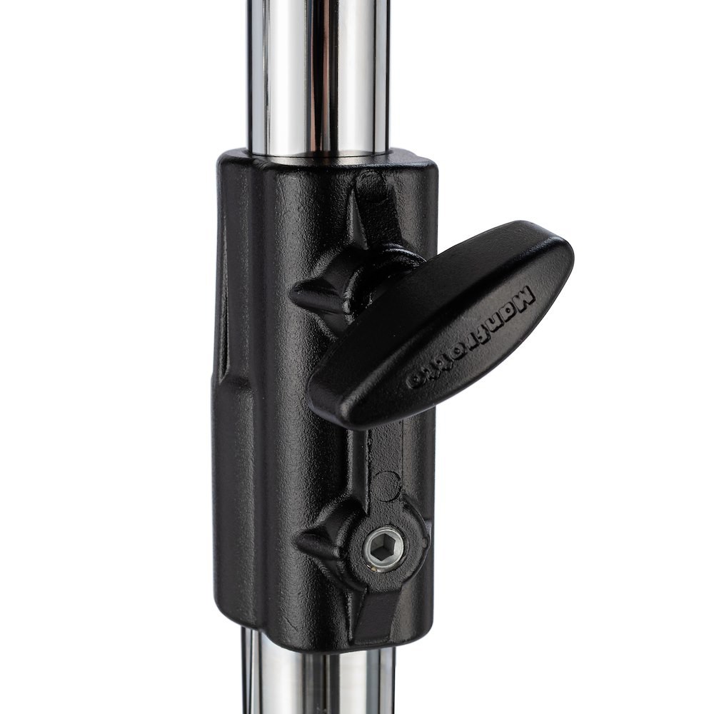 Das Manfrotto 142CS ist die Stahlversion der legendären Stativverlängerung von Manfrotto – robust wie ein Panzer für den täglichen Gebrauch. Der untere Teil ist ein 28-mm-Junior-Steckanschluss, der obere Teil ist eine vollständige Junior-Aufnahme mit Baby-Bolzen und 3/8-Zoll-Gewinde, und die beiden massiven Chromstahlteile werden mit großen, sicheren Manschetten arretiert. Mit 3,6 kg ist er schwerer als der Aluminium-142B, aber nichts ist besser, wenn Sie absolute Steifigkeit mit großen HMIs, schweren Softboxen oder großen Rahmen bei voller Auszugslänge benötigen.