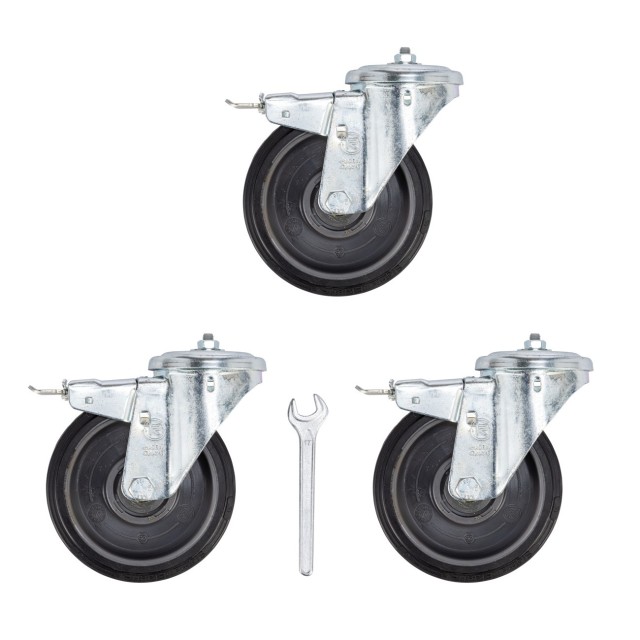 Das Manfrotto 374-10 ist ein robustes Set aus drei 160-mm-Rädern mit Bremsen und M10-Gewindestiften, das für die direkte Montage an Super Wind Up-Stativen konzipiert ist. Es bietet extrem leichtgängiges, geräuscharmes Rollen und sofortige Arretierung für schwere Lasten in einem robusten 8,5 kg schweren Studio-Dolly-Kit.