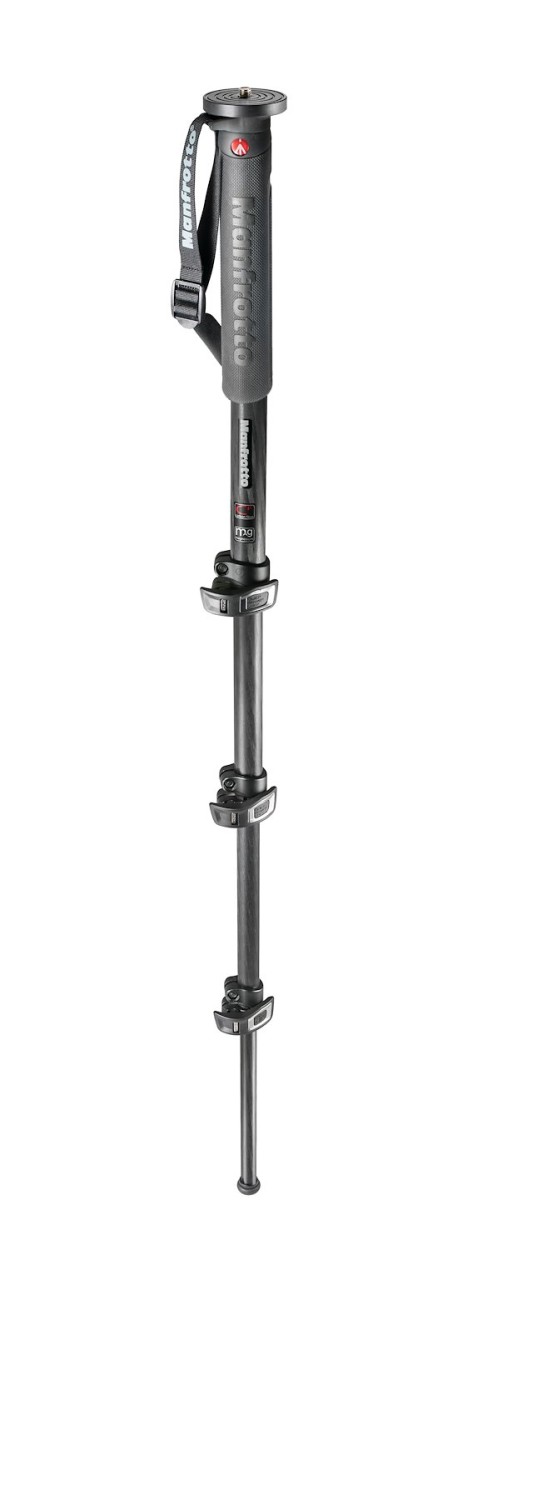 Das Manfrotto MPMXPROC4 XPRO 4-teilige Carbon-Einbeinstativ ist ein 600 g schweres, 52 cm lange, zusammengeklappte Carbonstange, die sich auf 164,5 cm ausziehen lässt, 7 kg trägt und über Hebelverriegelungsbeine, eine umkehrbare 1/4"-3/8"-Schraube, FLUIDTECH-Basis-Kompatibilität und Gummifüße verfügt – für ultraleichte, professionelle Aufnahmen von Sport, Wildtieren oder Menschenmengen.