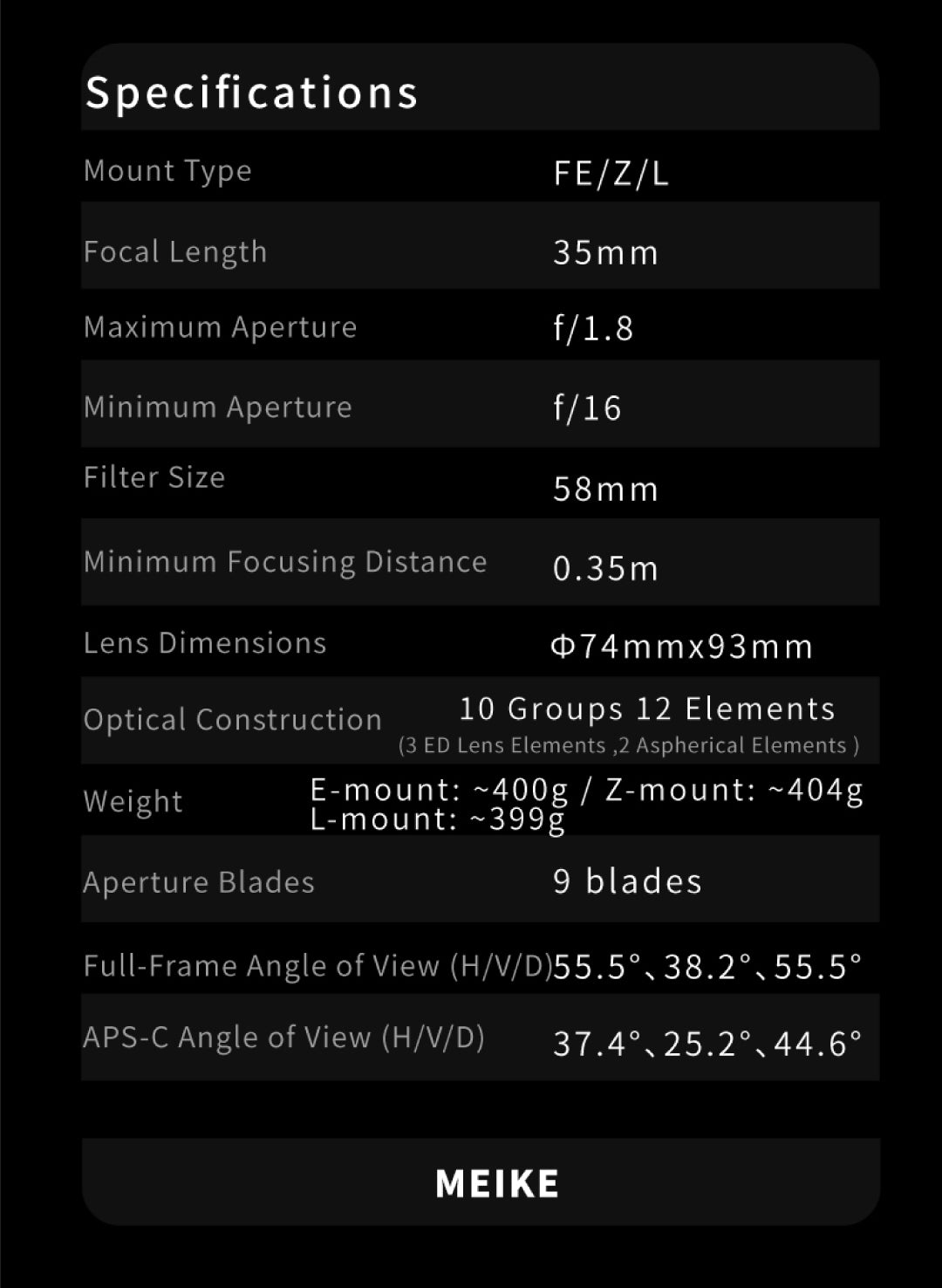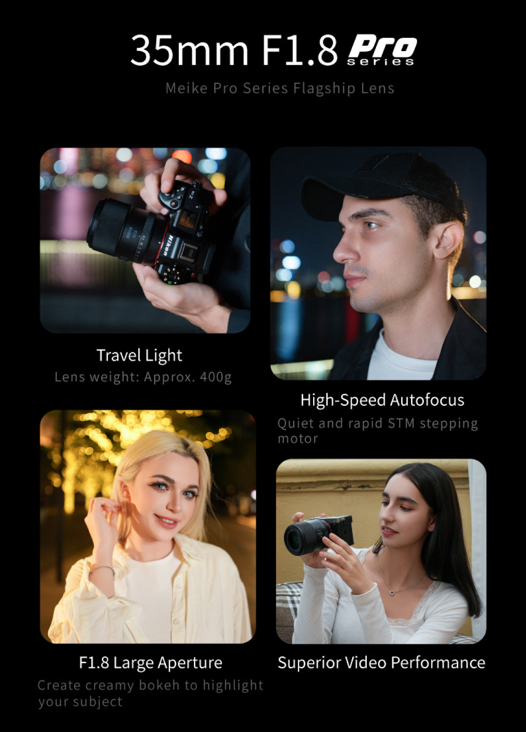 Meike 35mm f1.8 Pro Vollformat-Autofokus STM-Objektiv für Sony E-Mount-Kameras. Mit dem Meike 35mm f/1.8 STM Autofokus-Objektiv, das speziell für Sony Vollformatkameras entwickelt wurde, gelingen Ihnen atemberaubende Aufnahmen . Dieses vielseitige Festbrennweitenobjektiv bietet eine lichtstarke Blende von 1:1,8, die sich perfekt für ein schönes Bokeh und hervorragende Ergebnisse bei schlechten Lichtverhältnissen eignet.
