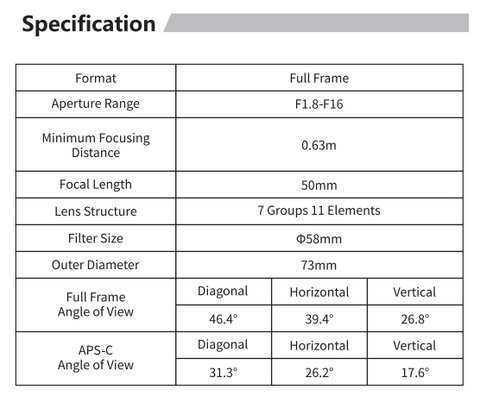Das brandneue 50mm/F1,8 verwendet die neueste optische Struktur, die eine große Blendenöffnung von F1,8 ermöglicht, ohne die Miniaturisierung und das geringe Gewicht zu beeinträchtigen. Die Mehrschichtvergütungstechnologie wird auf beiden Seiten des Objektivs eingesetzt, um realistischere Farben zu erzielen. Das Objektiv kann nicht so leicht Staub oder Flecken ansetzen und lässt sich leicht abwischen.