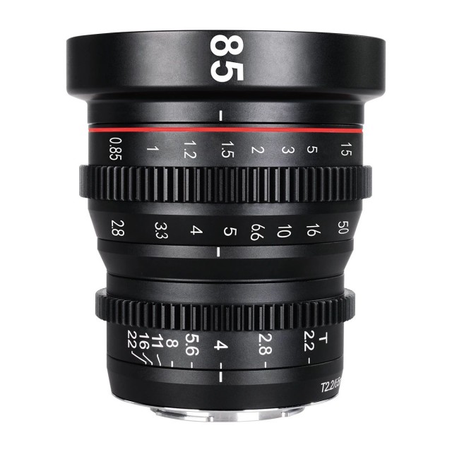 Vollmanuelles Filmobjektiv mit hoher Blendenzahl T2,2 und 85 mm Brennweite. Das Objektiv liefert scharfe Bilder mit minimalen Farbfehlern und gleichmäßiger Bildwiedergabe jenseits der Schärfentiefe, unterdrücktem "Atem"-Effekt und langem Fokusringweg (270°) mit M0,8-Verzahnung und Präzisionsmarken (Genauigkeit ca. 10"; Verzahnung auch am Blendenring). Variante für E-Mount-Bajonett.