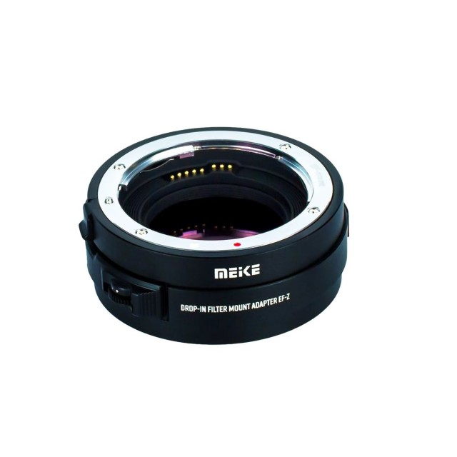 Drop-in-Filteranschlussadapter für die Montage von EF/EF-S-Objektiven an Nikon Z-Kameras (Z5, Z6, Z7, Z50, Z6II, Z7II und andere) und den Austausch von Drop-in-Filtern. Unterstützt AF. Das Standardset enthält VND- und Klarsicht-Einsteckfilter.