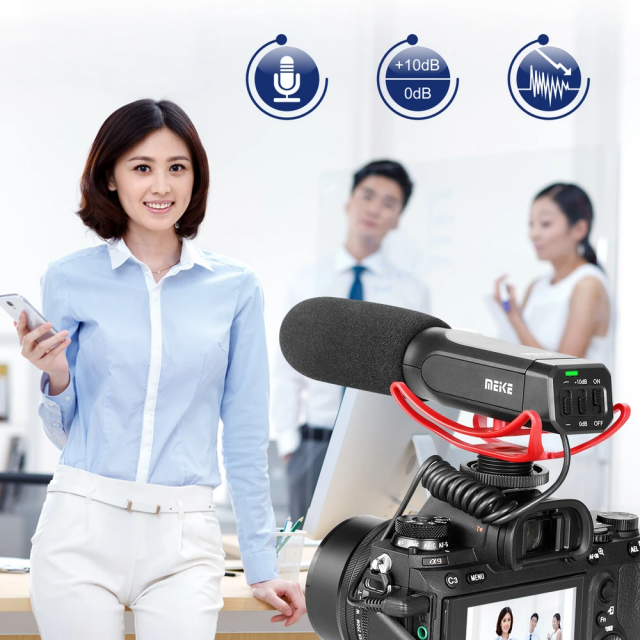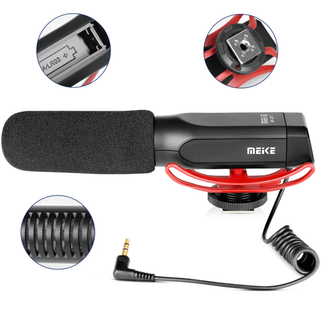 Kompaktes, gerichtetes Elektretmikrofon mit integrierter, gepolsterter Blitzkapselhalterung. Stromversorgung durch AAA-Batterie (Batterielebensdauer ca. 50 h), Standard 3,5 mm TRS-Ausgang, +10 dB Verstärkungsschalter und Hochpassfilter. Erfassungsbandbreite 30 Hz - 20 kHz, Eigenrauschen 20 dB(A), max. zulässiger Schalldruck 130 dB. Ebenfalls enthalten ist ein Schaumstoff-Windschutz.