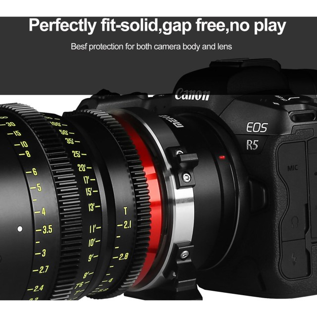 Dieser Objektivadapter ermöglicht die Verwendung von PL-Mount-Objektiven an Kameras mit Canon RF-Mount. Der Adapter ermöglicht die Fokussierung auf unendlich und garantiert dank seines Präzisionsdesigns eine feste Objektivbefestigung ohne jegliches Spiel. Ein spezielles internes mattes Finish sorgt für die Beseitigung von Streulicht.