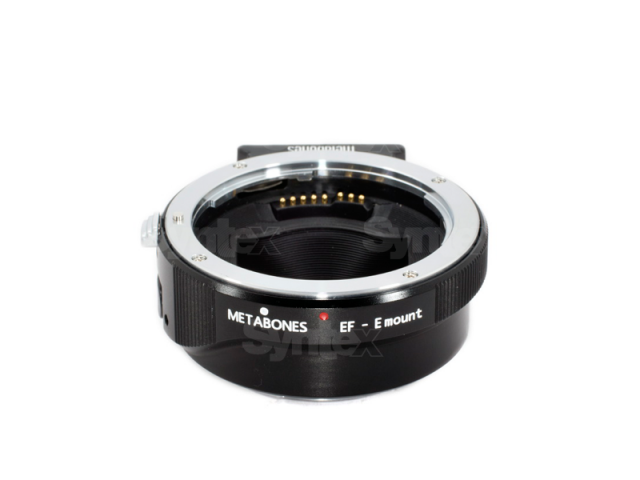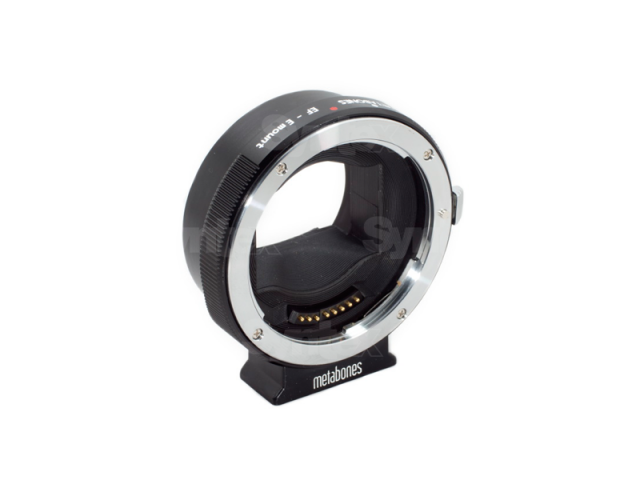 Metabones EF to Sony E-Mount Mark V ermöglicht es Ihnen, das EF-Objektiv an Sony E-Mount-Kameras zu verwenden. Sie überträgt auch die Elektronik des Objektivs. Enthält keinen Speed Booster. Metabones EF to Sony E-mount Mark IV überträgt Parameter wie Blende, EXIF, Bildstabilisierung und Autofokus.