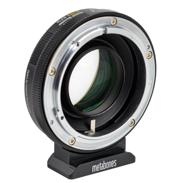 Der Adapter reduziert den Crop-Faktor von APS-C-Kameras mit X-Mount von 1,5x auf 1,07x und verwandelt so professionelle Zoom- oder Festbrennweitenobjektive effektiv in lichtstärkere Äquivalente. So wird beispielsweise ein Canon 50 mm f/1,2-Objektiv zu einem 35,5 mm f/0,9-Objektiv, wobei die hervorragende Auflösung über den gesamten Bildausschnitt erhalten bleibt. Die Konstruktion aus einer Aluminiumlegierung und Messing mit Chrombeschichtung gewährleistet Langlebigkeit, und eine Gummidichtung schützt den X-Mount vor Staub und Feuchtigkeit. Der mitgelieferte abnehmbare Stativfuß vom Typ Arca sorgt für eine sichere Befestigung an Kugelköpfen von Arca-Swiss, Markins und Photo Clam.