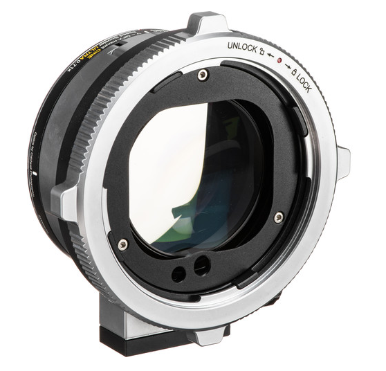 Dieser CINE Speed Booster Ultra 0,71x Adapter ist vollständig mechanisch und bietet keine elektronische Kommunikation zwischen Objektiv und Kamera. Zentralverschlüsse in Hasselblad V-Objektiven werden nicht unterstützt, der Betrieb mit Schlitzverschluss ist jedoch vollständig kompatibel.