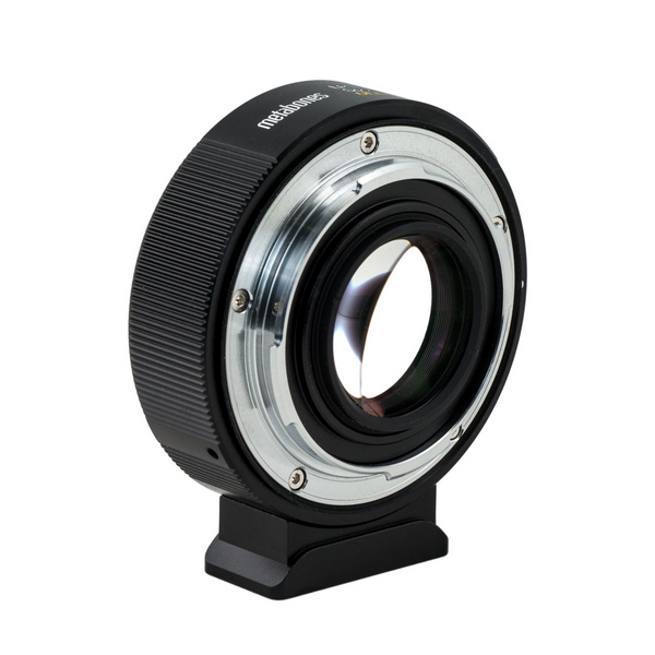 Das fortschrittliche optische Design mit fünf Elementen in vier Gruppen verwendet optisches Glas mit ultrahohem Index auf Tantalbasis von Caldwell Photographic, das die maximale Lichtdurchlässigkeit erhöht und den Bildkontrast und die Detailgenauigkeit verbessert. Der Adapter erhöht außerdem die maximale Blendenöffnung um eine Stufe, was zu einer besseren Leistung bei schlechten Lichtverhältnissen und einer geringeren Schärfentiefe für mehr künstlerische Kontrolle führt.