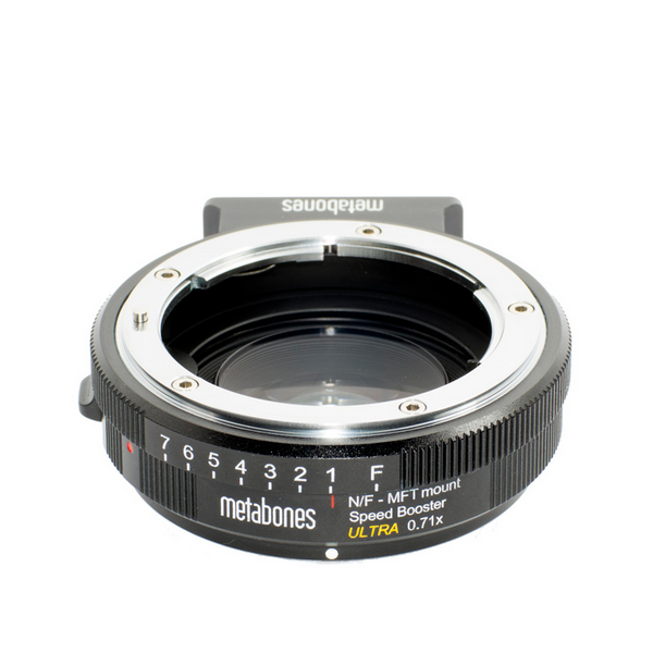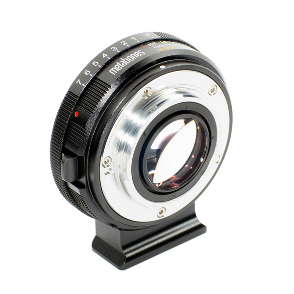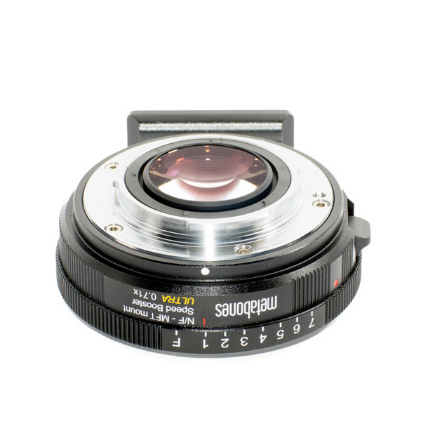 Passen Sie Nikon G- und F-Objektive, einschließlich AI- und Nicht-AI-Modelle, mit dem Metabones Nikon G to Micro Four Thirds Speed Booster ULTRA 0.71x an Ihre Micro Four Thirds-Kamera an. Dieser Adapter verwendet ein patentiertes optisches 5-Element-4-Gruppen-Design mit Glas auf Tantalbasis mit ultrahohem Index, das eine beeindruckende Bildqualität mit verbesserter Auflösung, Kontrast und einer um eine Blendenstufe erhöhten maximalen Blende liefert. Die 0,71-fache Vergrößerung des Speed Boosters sorgt für ein breiteres Sichtfeld, so dass in jedem Bild mehr erfasst wird und die Vielseitigkeit Ihrer Nikon-Objektive erhöht wird.