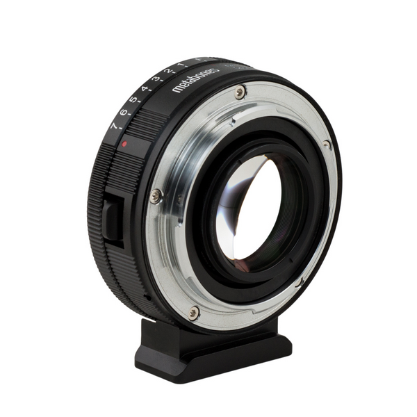 Seine 0,71-fache Brennweitenreduzierung sorgt für ein breiteres Sichtfeld, ideal für filmische Anwendungen. Der klickfreie Blendenring bietet einen Bereich von 8 Blendenstufen mit deutlich markierten Abstufungen für eine präzise Steuerung - eine bemerkenswerte Verbesserung für professionelle Anwender. Der aus einer Aluminiumlegierung und Messing gefertigte Adapter ist mit einer satinierten Oberfläche und einer Gummidichtung zum Schutz vor Staub und Feuchtigkeit ausgestattet. Außerdem bietet der abnehmbare Arca-Type-Stativfuß vielseitige Befestigungsmöglichkeiten.