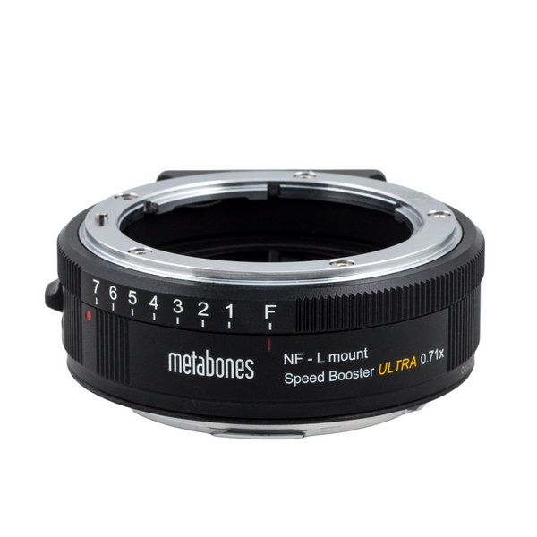 Der Metabones Nikon G to L-Mount Speed Booster ULTRA 0.71x ermöglicht den Anschluss von Nikon F-Mount-Objektiven, einschließlich G-, AI- und Nicht-AI-Typen, an Blackmagic Design L-Mount-Kameras und verbessert Blende und Sichtfeld.