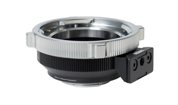 Seine Präzisionsoptik besteht aus fünf Linsenelementen in vier Gruppen, gefertigt aus Tantalglas mit ultrahohem Brechungsindex, und gewährleistet hervorragende Schärfe in den Bildecken, minimale Verzerrung und präzise Farbwiedergabe. Die Vollmetallkonstruktion des Adapters kombiniert leichte Aluminiumkomponenten mit robusten Messing-Befestigungsringen für eine lange Lebensdauer, während die mattschwarze Innenseite interne Reflexionen und Streulicht minimiert. Ein PL-Anschluss mit Rastverriegelung sichert das Objektiv, und der mitgelieferte abnehmbare Stativfuß vom Typ Arca ermöglicht eine einfache Montage auf Kugelköpfen von Arca-Swiss, Markins oder Photo Clam.