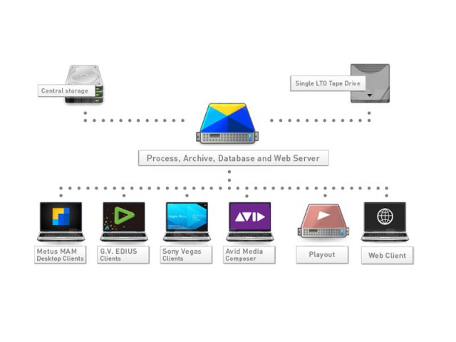 Da es jedoch auf einem einzigen Server läuft, eignet es sich am besten für kleine bis mittelgroße Kunden. Wie sich in der Lizenzstruktur widerspiegelt, reduziert die Systemarchitektur die Möglichkeit, das Archiv zu skalieren, und einige der API und optionalen Komponenten von Metus MAM Enterprise, wie z. B. die bildbasierte Suche und das Information Lifecycle Management, sind nicht verfügbar.