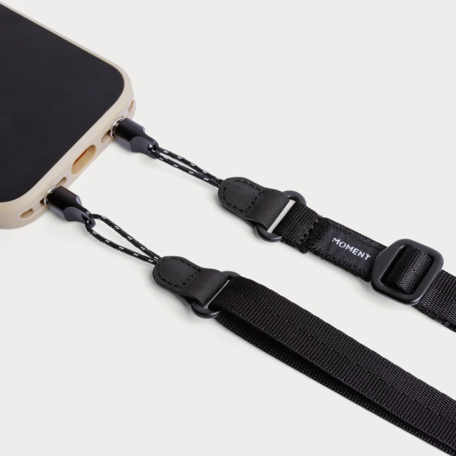 Die verstellbaren Handygurte von Moment halten Ihr Handy beim Fotografieren, Pendeln oder einfach nur beim Spaziergang durch die Stadt sicher in Ihrer Nähe. Sie bestehen aus einem Nylonband in Militärqualität und robusten Aluminiumkomponenten, wodurch sie leicht, stabil und bequem zu tragen sind. Farbe: Schwarz.