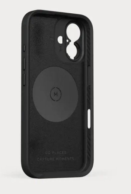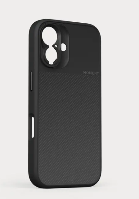 Moment Tasche für iPhone 16 - MagSafe-kompatibel - Schwarz: Eine professionelle Kameratasche für das iPhone 16 zur Befestigung von Moment-Objektiven, -Filtern und -Zubehör, mit Schutz vor Stürzen aus 10 Fuß Höhe, kabellosem Laden und verbesserter Kompatibilität mit MagSafe-Zubehör.