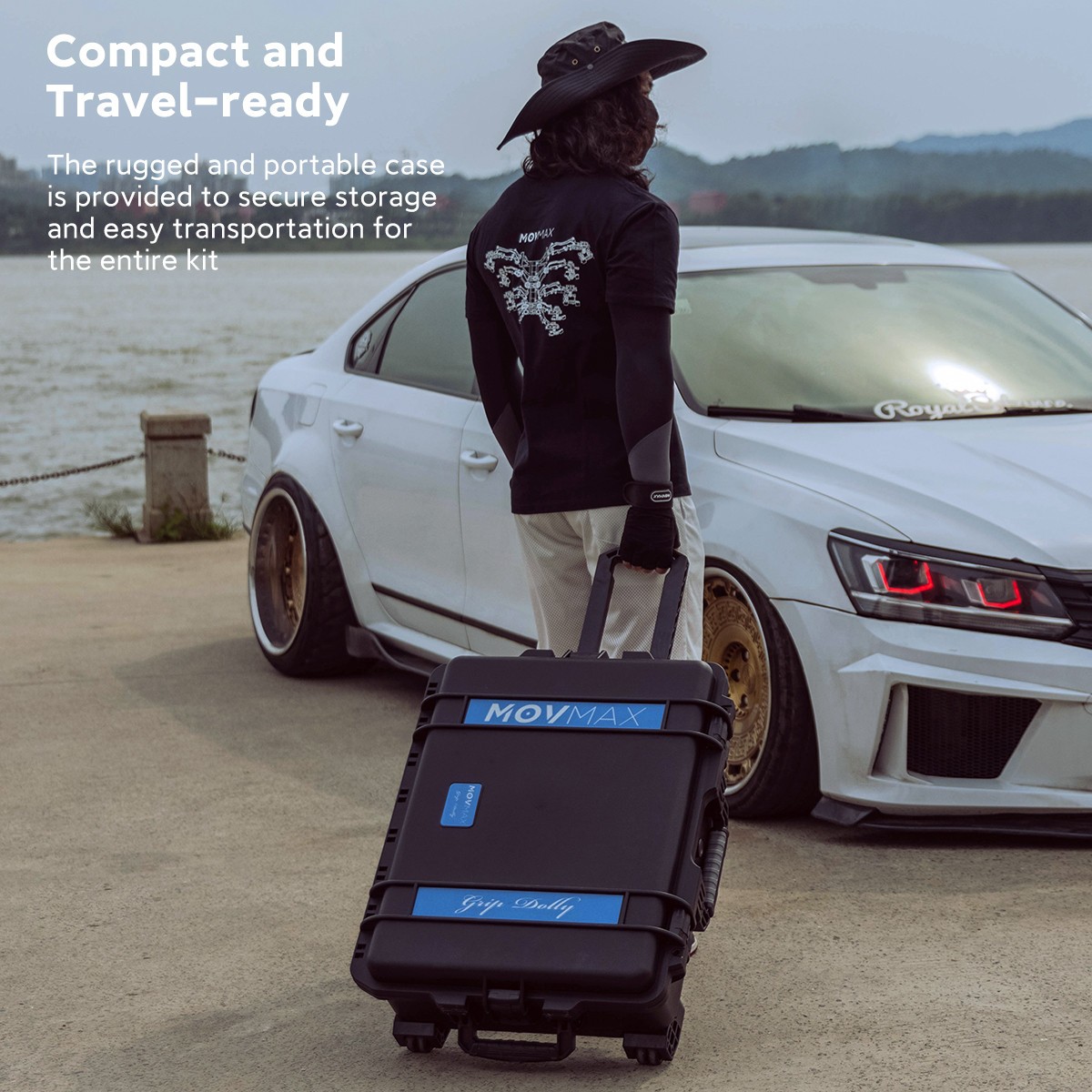 Das MOVMAX Grip Dolly Pro Kit ist ein robustes Dolly-System mit einer Tragkraft von 198 lbs. Es umfasst eine flache Platte, 75/100/150-mm-Kugeladapter, einen Mitchell-Plattenadapter und Polymer-Laufrollen für stabile Bewegung. Der Dolly verfügt über mehrere 1/4"-20- und 3/8"-16-Gewinde, Mittel- und Seitenstützen und wird mit einem Flightcase für einfachen…