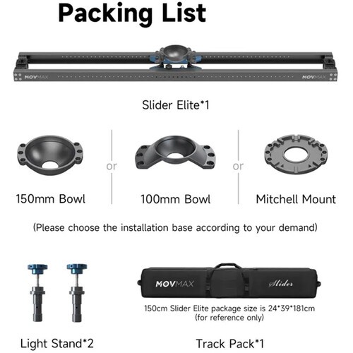 Der MOVMAX Slider Elite mit 100-mm-Schalenhalterung (1,2 m) sorgt mit seinen robusten Aluminiumschienen und seinem reibungsbasierten Gleitsystem für flüssige, professionelle Gleitzüge. Sein 100-mm-Schalenführungsschlitten trägt bis zu 55 lbs, während die mitgelieferten Lichtstativadapter und eine Tragetasche ihn vielseitig und tragbar für jede Produktionsumgebung machen.