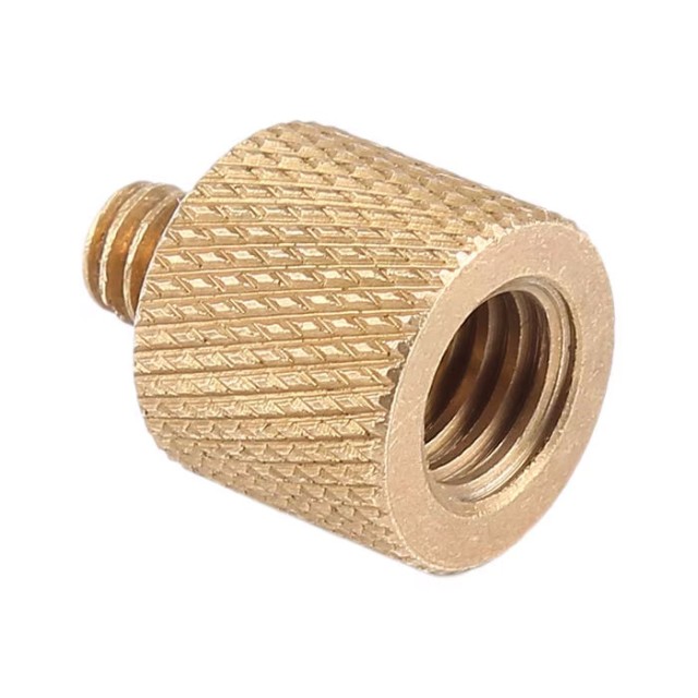 Vergoldetes Kupfergewinde-Reduzierstück von 3/8" auf 1/4" zur Befestigung von Kameras, Camcordern, Taschenrecordern oder zusätzlichen Halterungen an Mikrofon- und Studiostativen.