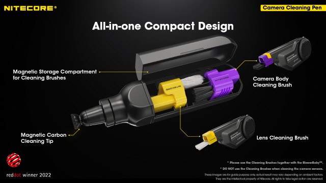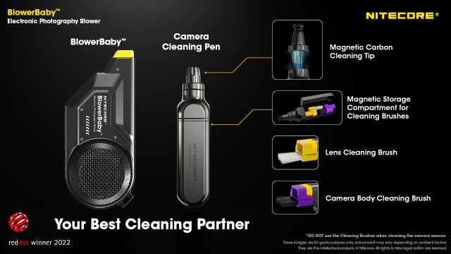 Das Nitecore BlowerBaby Kit enthält das Nitecore BlowerBaby, einen Nitecore CMOS-Filter, einen Nitecore Kamera-Reinigungsstift und eine Nitecore Aufbewahrungstasche für das BloweBaby.