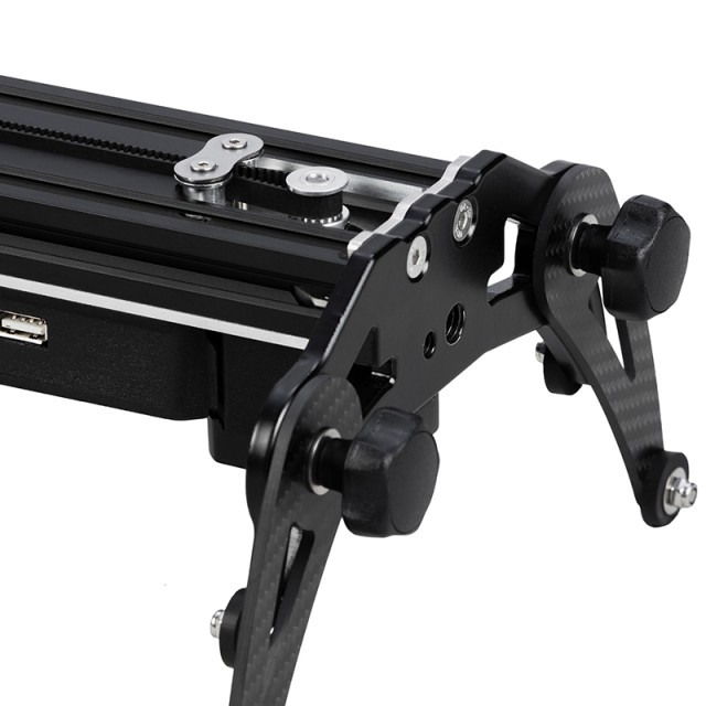 Mit Geschwindigkeiten von 1,6 mm/s bis 133 mm/s eignet sich dieser Slider sowohl für extrem langsame Kamerafahrten als auch für schnelle Kamerafahrten. Er unterstützt eine horizontale Last von bis zu 5 kg und eine vertikale Last von 3 kg (mit einem Gegengewicht als Zubehör) und gewährleistet so Stabilität und Präzision.