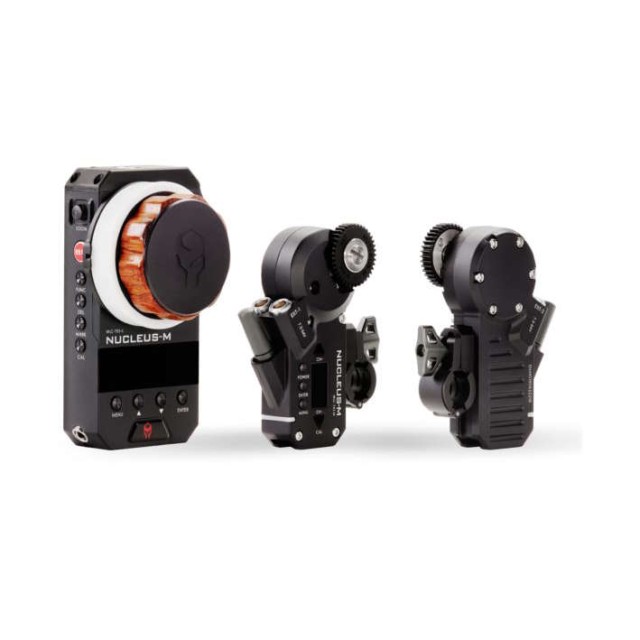 Der kabellose Nucleus-M-Motor umfasst ein 0,8 Mod-Antriebsrad nach Cine-Standard und einen 19-mm-Stangenadapter mit einer Buchse zur Montage auf einer 15-mm-Stange. Der Motor verfügt über eine automatische oder manuelle Kalibrierung, ein Anzeigefenster sowie hohe, mittlere und niedrige Drehmomenteinstellungen.