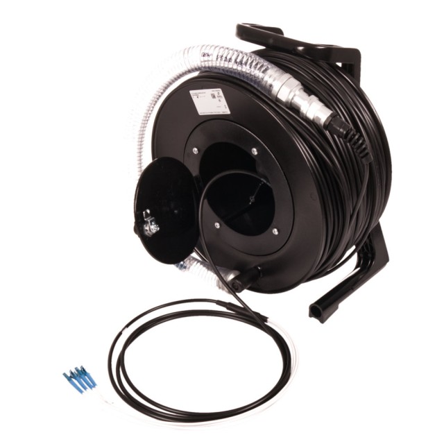 Optisches Kabel auf Schill GT Trommel gewickelt, LC/PC Stecker, 09/125um, 4 Fasern, Länge 200m