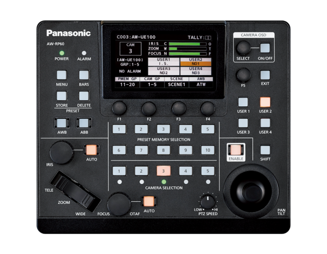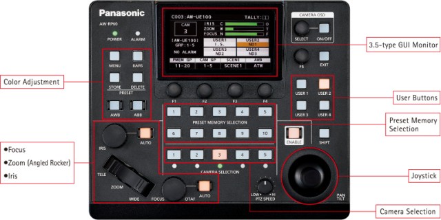 Der neue Joystick unterstützt reibungslose Schwenk- und Neigevorgänge und gewährleistet eine präzise Erfassung des Zielbildes. Der Griff des Joysticks ist ca. 1,5 Mal größer als beim Vorgängermodell AW-RP50, wodurch eine stabilere Bedienung erreicht wird.