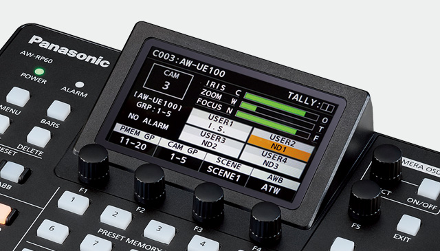 Die AW-RP60GJ ist mit einem 3,5-Typ-LCD-Bildschirm ausgestattet, der ein GUI-Menü bietet, in dem die benötigten Informationen auf einen Blick zu sehen sind, um eine intuitive und schnelle Kamerasteuerung zu ermöglichen.