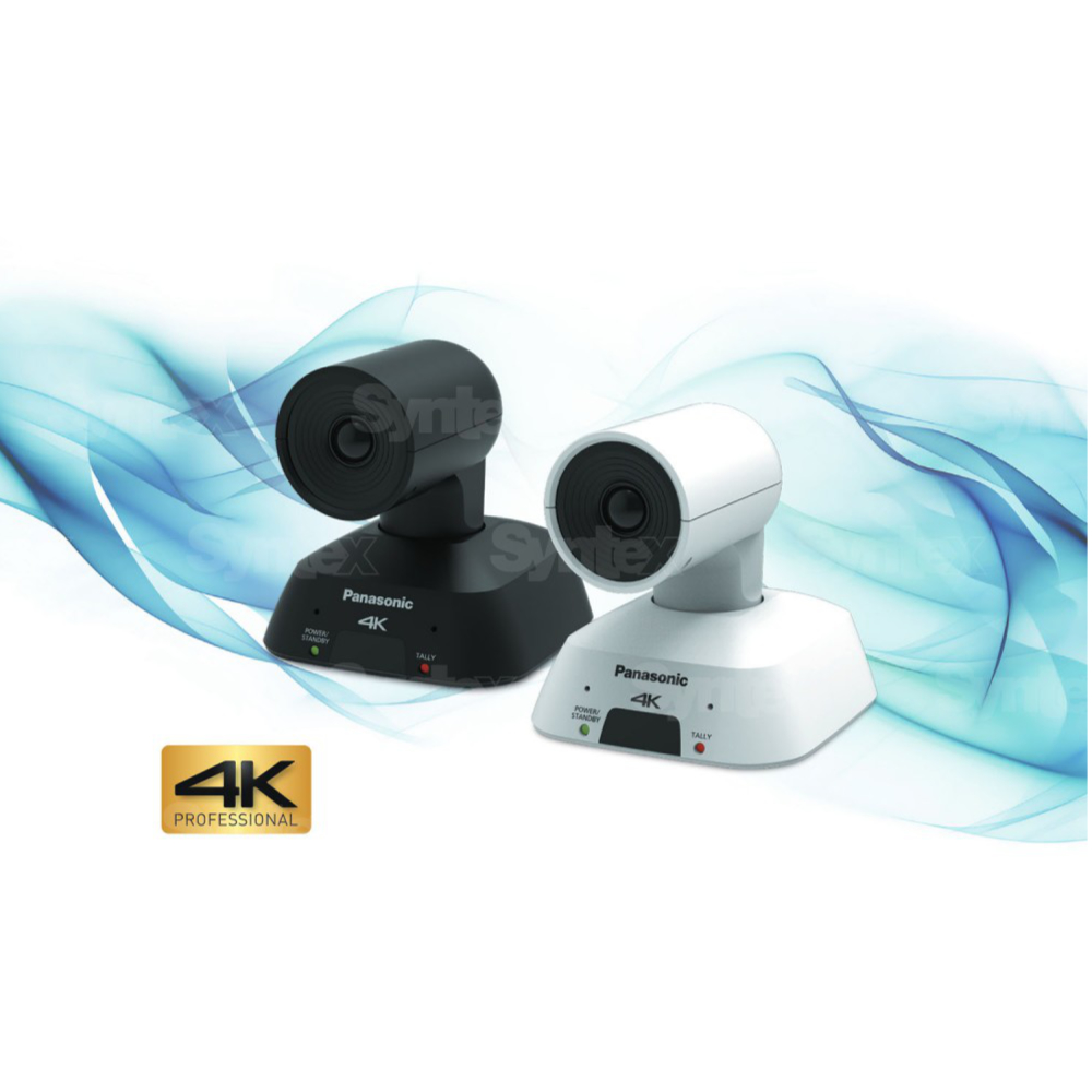Die kompakte 4K-PTZ-Kamera AW-UE4KG von Panasonic in Schwarz kann auf einem Tisch oder in einer Halterung verwendet werden, um UHD 4K30-Video und Stereo-Audio in einem ultraweiten Sichtfeld von 111° zu erfassen und zu übertragen. Es verfügt über ein eingebautes Stereomikrofon sowie Stummschaltungs- und ACL-Funktionen und unterstützt LPCM (USB)/AAC-LC (IP) 48 kHz, 16-Bit-Audioaufnahmen. Sie können das Gerät an einen PoE-Hub oder über USB an einen PC anschließen, um Strom und Daten mit einem einzigen Kabel zu übertragen. Unabhängig davon, ob Sie an einen Hub angeschlossen sind oder nicht, werden bis zu 328' Cat 5e oder höhere Kabel für das Streaming unterstützt. Ein HDMI-Ausgang ist ebenfalls verfügbar.