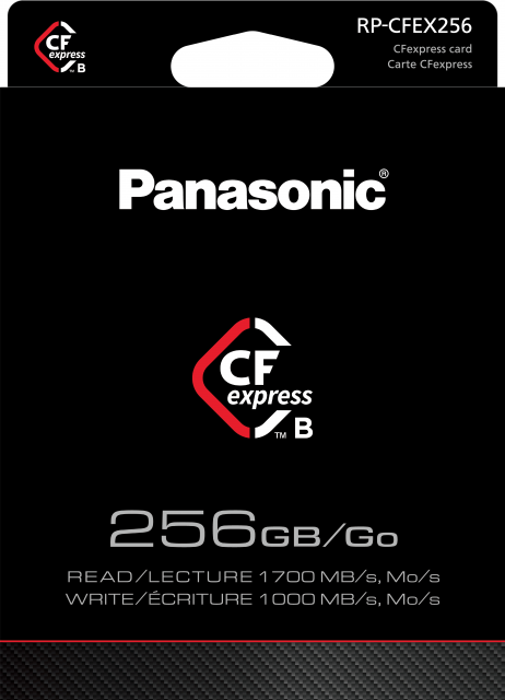 Panasonics professionelle CFexpress-Karte mit 256 GB und hohen Lese-/Schreibgeschwindigkeiten für den Langzeiteinsatz und sichere Aufnahmen.
