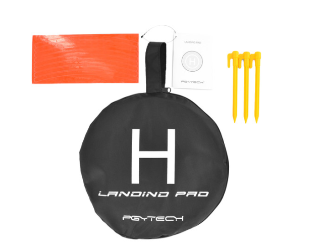 Das Landeplatz-Pad wurde für den mobilen Einsatz entwickelt und springt beim Öffnen automatisch in Form. Es lässt sich kompakt zusammenfalten und passt in die mitgelieferte Nylontasche mit Reißverschluss, sodass es leicht transportiert werden kann. Für zusätzliche Stabilität enthält das Kit drei Bodenstifte, mit denen das Pad befestigt werden kann, damit es nicht vom Wind weggeweht wird. Dieses leichte und dennoch strapazierfähige Landeplatz-Pad ist ideal für den Einsatz im Freien und sorgt dafür, dass der Gimbal und die Kamera Ihrer Drohne bei jedem Flug geschützt bleiben.