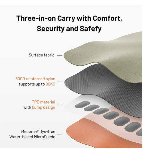 Er besteht aus atmungsaktivem, umweltfreundlichem, verstärktem 600D-Nylon und einem geflochtenen Dyneema-Band und bietet sowohl Festigkeit als auch Flexibilität. Schnellverschlüsse ermöglichen ein schnelles Anbringen und Abnehmen Ihrer Kamera, während das TPE-Futter mit Noppenmuster ein Verrutschen verhindert und den Komfort erhöht. Der Gurt ist mit nur 77 g sehr leicht, kann jedoch eine Kamera mit einem Gewicht von bis zu 90 kg tragen und eignet sich daher auch für schwere Profikameras. Aus Sicherheitsgründen sollten Sie den Gurt ersetzen, wenn die gelbe Schicht des Bandes sichtbar wird.