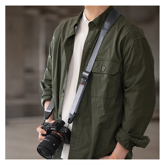 Die widerstandsfähige EPDM-Polsterung und die stromlinienförmige Form erhöhen den Komfort und verringern die Ermüdung bei langen Fotosessions, während die rockgraue Oberfläche für eine elegante, professionelle Ästhetik sorgt. Dieser Gurt ist mit einer Arca-Typ-QR-Platte ausgestattet und eignet sich für verschiedene Kamera-Setups.