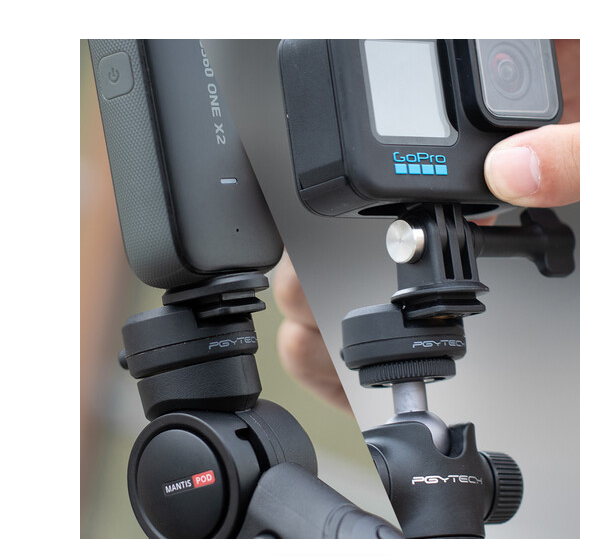 Das PGYTECH CapLock Action Camera Quick Release Set ermöglicht eine schnelle und sichere Befestigung an Ihrem Kamerastativ mit einem 3-poligen Adapter und einer 1/4"-20-Schnittstelle und bietet eine stabile, flexible und werkzeuglose Installation für Actionkameras und Zubehör.