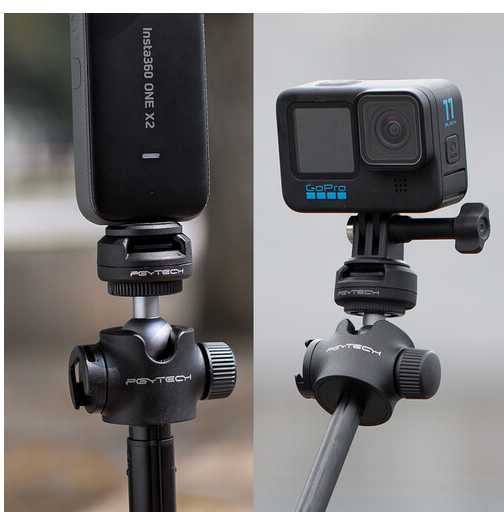 Das Set enthält eine 3-polige Action-Kamera-Halterung mit Rändelschraube und eine verriegelbare Schnellwechselbasis, die sowohl 1/4"-20-Gewinde- als auch Schraubschnittstellen unterstützt und somit eine breite Kompatibilität mit Stativen, Käfigen, Armen und Befestigungszubehör bietet. Dank seines flexiblen Vier-Wege-Installationsdesigns können Sie die Konfiguration an verschiedene Aufnahmewinkel und Rig-Konfigurationen anpassen.