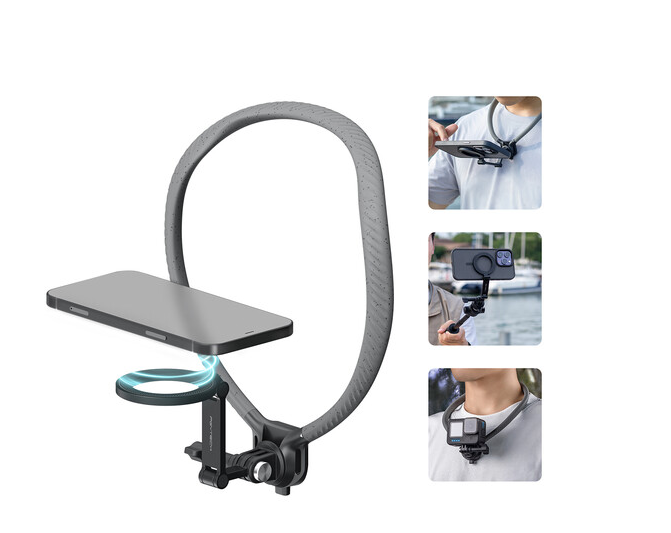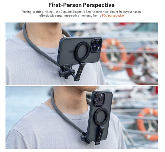 Nehmen Sie mit der magnetischen Smartphone-Halshalterung CapLock von PGYTECH beeindruckende Aufnahmen aus der Ich-Perspektive auf, ohne die Hände zu benutzen. Die Halterung verfügt über einen verstellbaren Halsbügel, ist mit MagSafe kompatibel und verfügt über ein sicheres magnetisches Schnellverschlussdesign.
