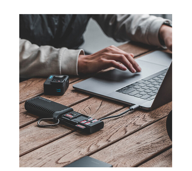 Das PGYTECH P-GM-163 Classic Black CreateMate High-Speed-Kartenlesegerät-Etui kombiniert ein robustes Kartenlesegerät mit einer Aufbewahrungslösung. Mit Steckplätzen für SD-, microSD- und Nano-SIM-Karten, Schutzklasse IP54 und einer schnellen USB-C-Datenübertragung von bis zu 312 MB/s ist es ideal für Fotografen und Content-Ersteller, die viel unterwegs sind.