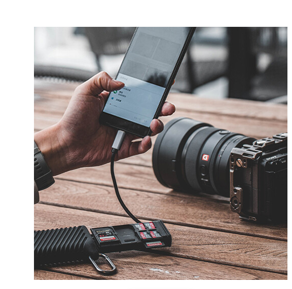 Das PGYTECH P-GM-163 CreateMate High-Speed-Kartenlesegerät-Etui in klassischem Schwarz ist eine vielseitige Speicher- und Datenübertragungslösung für Fotografen, Videografen und Drohnenbetreiber. Dieses kompakte Etui kombiniert ein High-Speed-Kartenlesegerät mit einem übersichtlichen Stauraum für vier SD-Karten, vier microSD-Karten und zwei Nano-SIM-Karten. Ausgestattet mit einem UHS-II SDXC-Kartensteckplatz und einem UHS-II microSDXC-Kartensteckplatz bietet es Datenübertragungsgeschwindigkeiten von bis zu 312 MB/s über das integrierte USB-C 3.2 Gen 1-Kabel.
