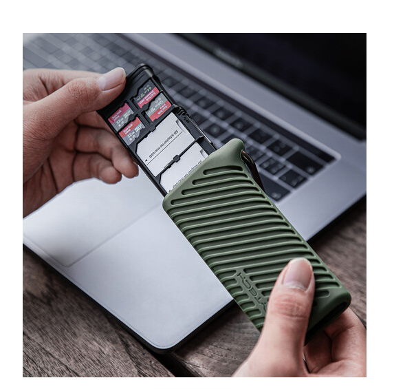 Mit dem PGYTECH P-GM-162 CreateMate High-Speed-Kartenlesegerät-Etui in Moosgrün können Sie Speicherkarten effizient aufbewahren, transportieren und übertragen. Mit UHS-II SDXC- und microSDXC-Kartensteckplätzen, Schutzklasse IP54 und einem integrierten USB-C 3.2 Gen 1-Kabel unterstützt dieses Etui Plug-and-Play-Konnektivität mit Windows, Mac, Linux und Android für schnelle und zuverlässige Datenübertragungen unterwegs.