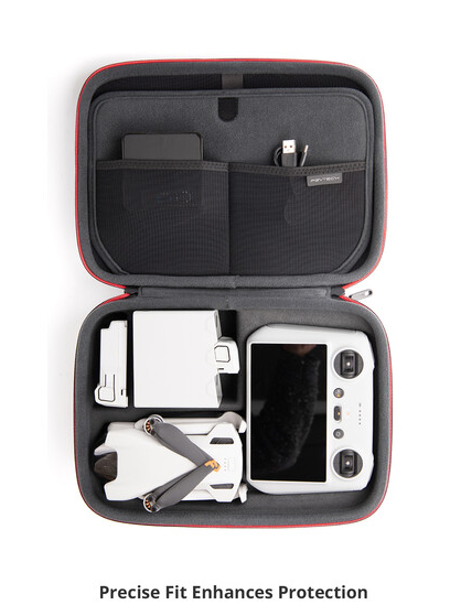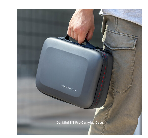 Transportieren Sie Ihre DJI Mini 3 oder Mini 3 Pro Drohne sicher mit der PGYTECH Hartschalen-Tragetasche. Mit ihrer wasserabweisenden Außenseite, dem vibrationsdämpfenden EVA-Futter und den geformten Fächern bietet sie sicheren Platz für Ihre Drohne, den Controller, Akkus, das Ladegerät und Zubehör.