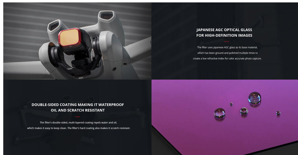 Dieser UV-Filter ist ideal für den täglichen Flugbetrieb und die Luftbildfotografie und bietet DJI Mini 3-Piloten sowohl Objektivschutz als auch gleichbleibende Bildqualität.