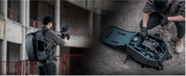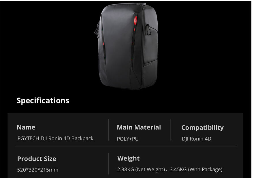 Der PGYTECH P-CB-245 Rucksack ist eine spezielle Aufbewahrungs- und mobile Betriebslösung für den DJI Ronin 4D mit konfigurierbaren Trennwänden, einem integrierten Beetle Clip und ergonomischer Unterstützung, um die Ermüdung des Bedieners zu verringern.