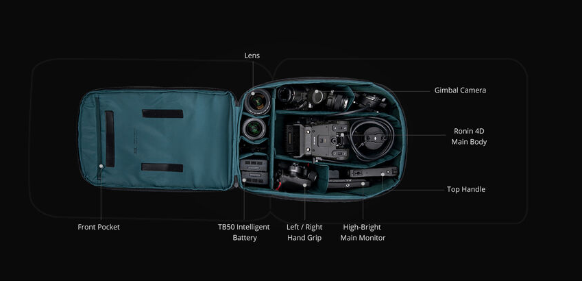 Der PGYTECH P-CB-245 Rucksack für DJI Ronin 4D ist eine integrierte Lösung, die sichere Aufbewahrung mit mobiler Betriebsunterstützung für das Ronin 4D-Gimbal-System kombiniert. Der Rucksack wurde für den Transport des kompletten Ronin 4D-Kits entwickelt und verfügt über verstellbare Trennwände mit Klettverschluss, um den Gimbal-Körper, Akkus, Objektive und Zubehör effizient zu organisieren.