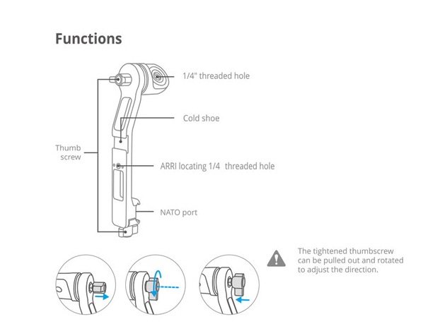 Der Handgriff besteht aus einer leichten und dennoch langlebigen Aluminiumlegierung und verfügt über mehrere Erweiterungsschnittstellen, darunter Kaltschuhhalterungen und 1/4"-20-Gewindebohrungen, an denen Sie Mikrofone, Monitore, Leuchten oder anderes Zubehör befestigen können. Kompakt und tragbar, ist er ideal für Filmemacher und Content-Ersteller, die ihre kreativen Möglichkeiten erweitern möchten, ohne dabei auf Komfort oder Kontrolle zu verzichten.
