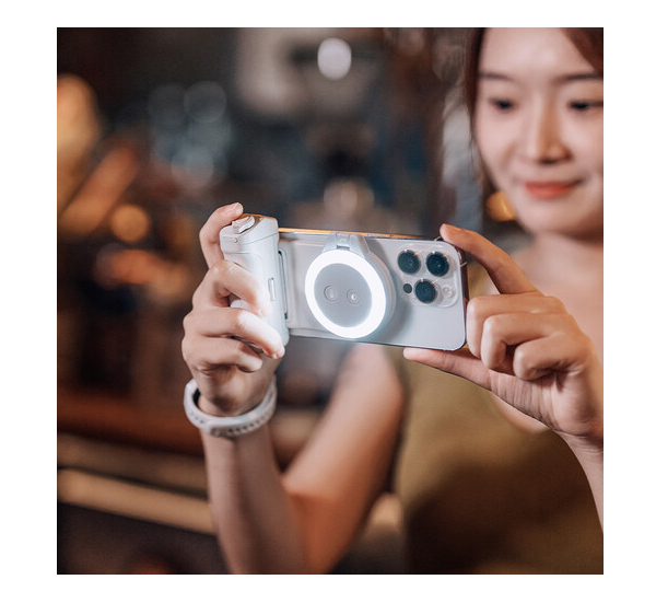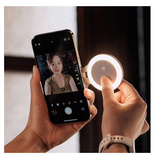 Mit 34 hocheffizienten LEDs mit einem CRI-Wert von 95 liefert das Licht eine farbgenaue Ausleuchtung in drei wählbaren Modi: 9000 K kaltes Licht für scharfe Details, 5500 K weiches Licht für natürliche Selfies und 2500 K warmes Licht für Abend- oder Dämmerungsstimmungen. Die 290°-Drehbarkeit sorgt für flexible Beleuchtungswinkel, während zwei intuitive Tasten die Helligkeit und Farbtemperatur steuern. Der integrierte 300-mAh-Lithium-Ionen-Akku ermöglicht eine kontinuierliche Nutzung von bis zu 30 Minuten und lässt sich über USB-C in nur 60 Minuten vollständig aufladen. Das MagGlow dient gleichzeitig als Handyhalterung für die Betrachtung oder Aufnahme auf dem Tisch.