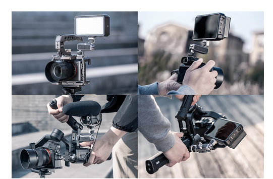 Der Arm besteht aus einer strapazierfähigen Aluminiumlegierung mit integrierten Silikonbändern an jedem Kugelgelenk und verhindert so den Verschleiß durch Metall auf Metall, während er gleichzeitig den Halt beim Festziehen erhöht. Der Arm verfügt über drei austauschbare Kugelenden für flexible Befestigungsmöglichkeiten: zwei mit 1/4"-20-Gewindestiften mit rutschfesten Polstern und federbelasteten, verdrehsicheren Fixierstiften und ein Kaltblitzschuh-Kugelende mit einer 1/4"-20-Gewindebohrung. Eine Kugel verfügt außerdem über ein 3/8"-16-Gewindeloch für eine breitere Kompatibilität. Diese modularen Kugelenden können einzeln als Adapter oder kombiniert zum Bau individueller Rigs verwendet werden.